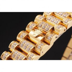 Bracelet | Diamond encrusted 18k yellow gold plated link bracelet with 18k yellow gold plated Rolex logo carved hidden clasp |